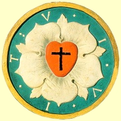 | In einem Brief am 8. Juli 1530 beschreibt Martin Luther sein Wappen: “ Das erste sollte ein Kreuz sein - schwarz - im Herzen das seine natürliche Farbe hätte.